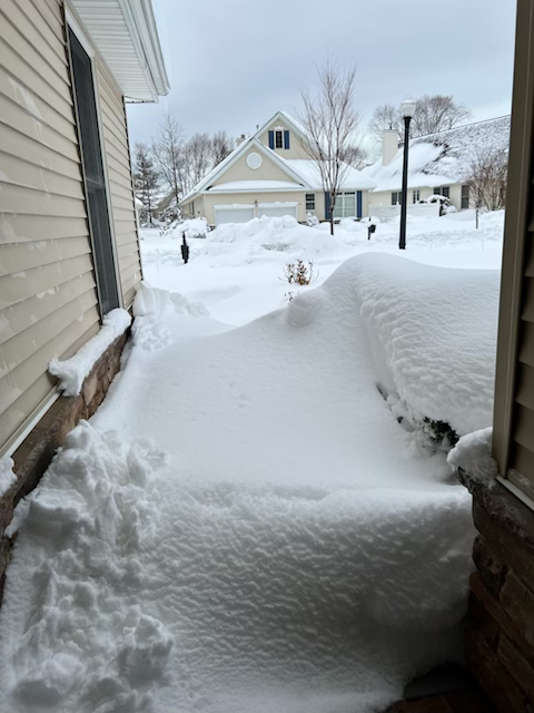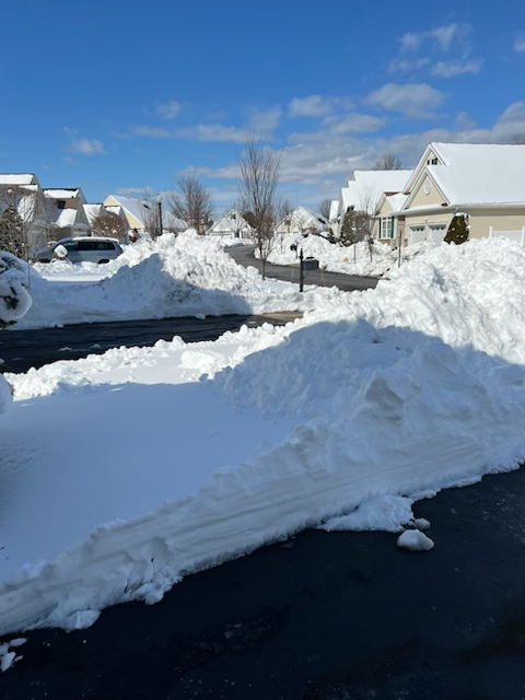 Weather continues to plague the East coast, with snow and cold temperatures. Ginny Van Zile offered these photos of her front yard…in Holmdel, NJ. Hope she lives next to enterprising kids looking for some spending money!